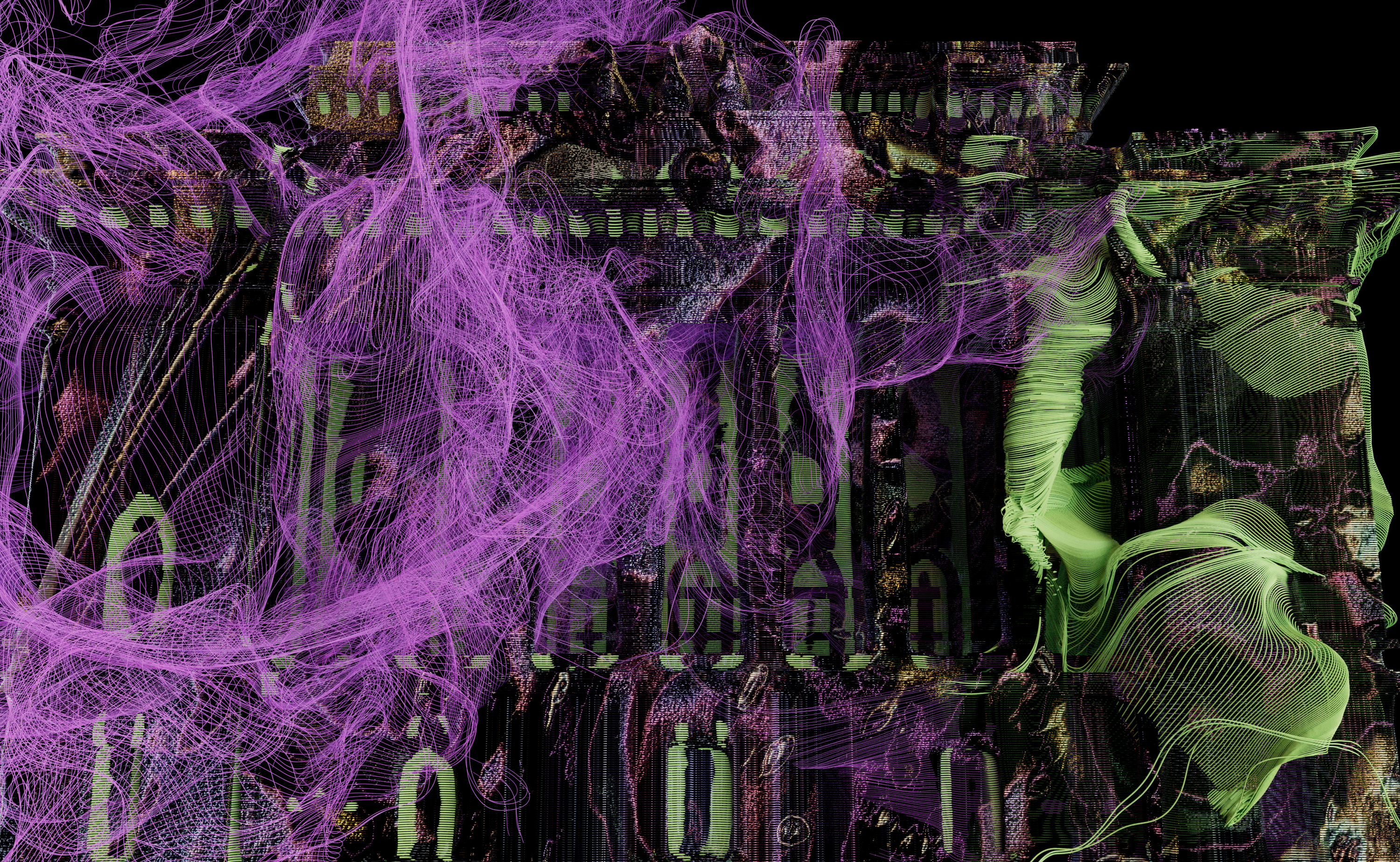 Вода в нашей работе — как метафора театра: под гладкой поверхностью течёт невидимая, но сложная жизнь. Вдохновившись термохалинными потоками Чёрного моря, мы создали текучую цифровую ткань, где сцена — это лишь вершина многослойного мира образов и движения