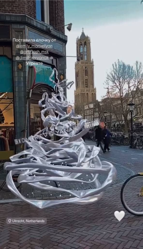 Нам не хотелось делать что-то такое, что приведет к вырубке деревьев. Но мы все равно стремились принести счастье в дом. Такая елочка стала идеальным решением. Она всегда в телефоне. Её не надо покупать, разбирать, собирать. Ее можно просто открыть и поставить в любую часть квартиры, дома, двора. И, конечно, смотреть на нее, радоваться и загадывать желания, создавая вокруг новогоднее настроение.»