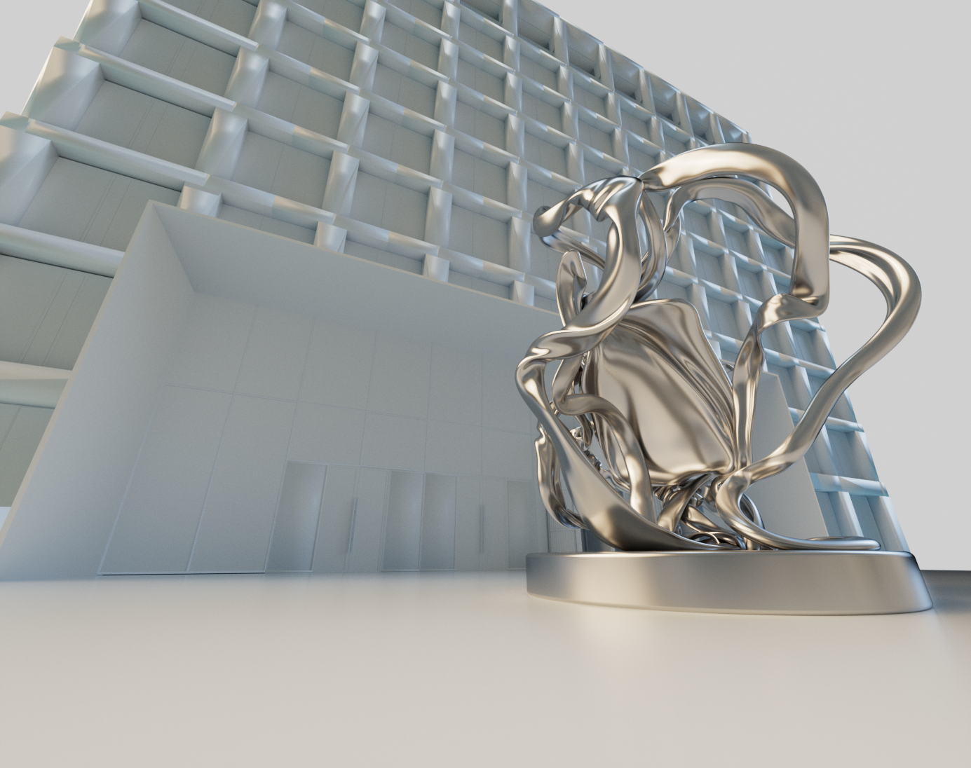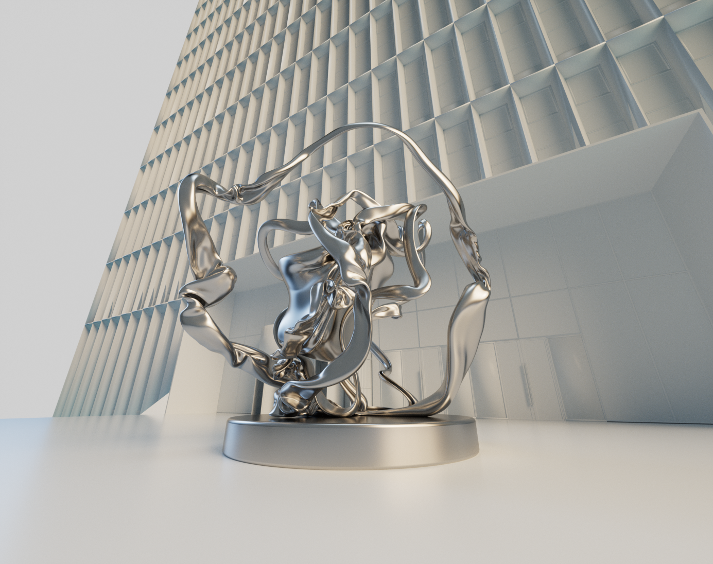 Планета для нас — это пустой холст, на котором мы создаем, поддаваясь динамике природных стихий. Иллюстрация потока мысли и стремления. Смотрящий на скульптуру зритель ощущает всю мощь и силу воды, ее движение и порыв, ее течение и поток. Два бизнес-центра — две опоры, между которыми на контрасте находится мощный поток, вихрь — играя контрастам, добиваемся гармонии.